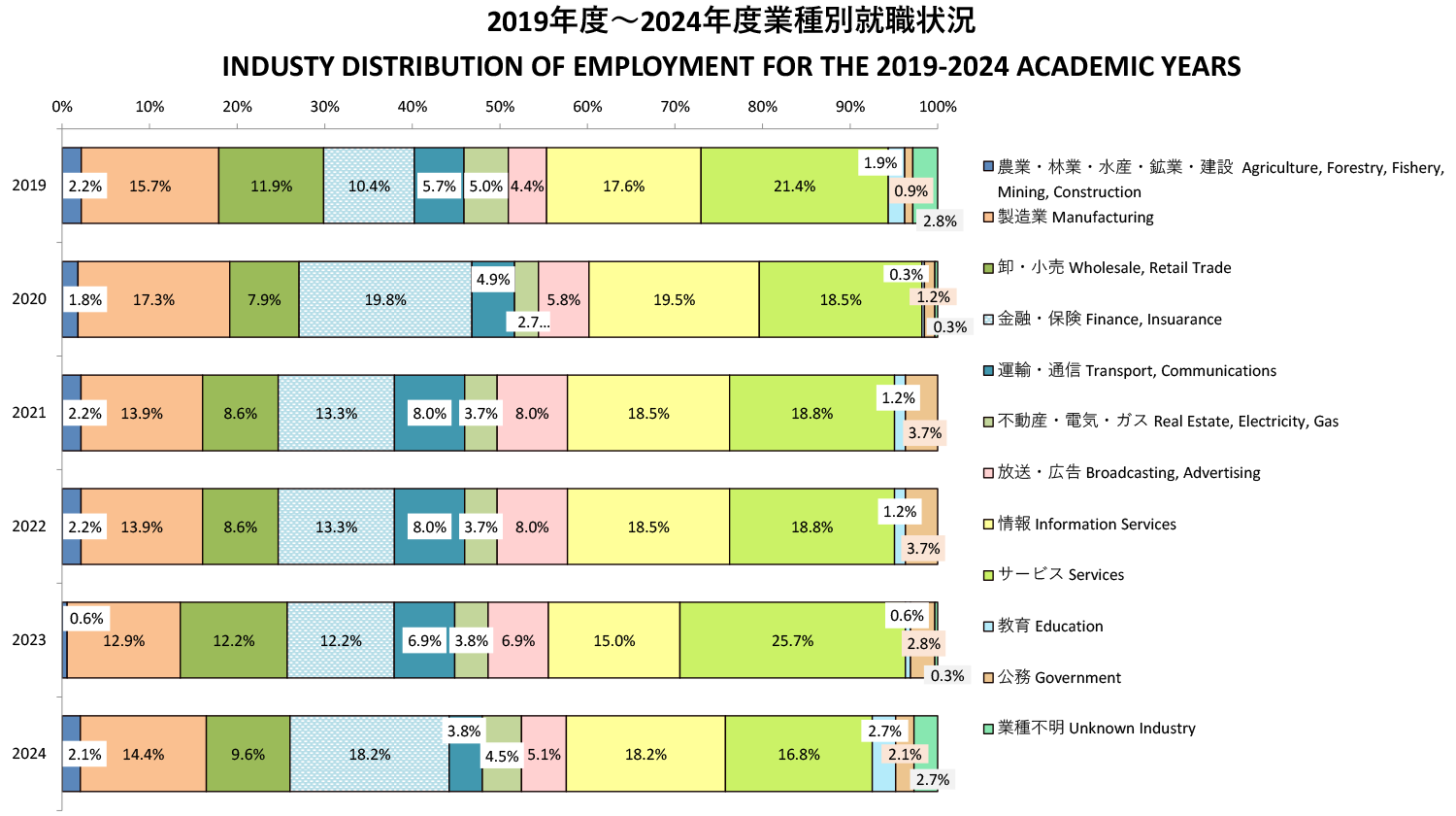 2019年度~2024年度業種別就職状況