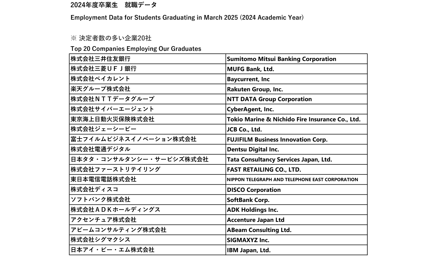 2024年度の就職先一覧