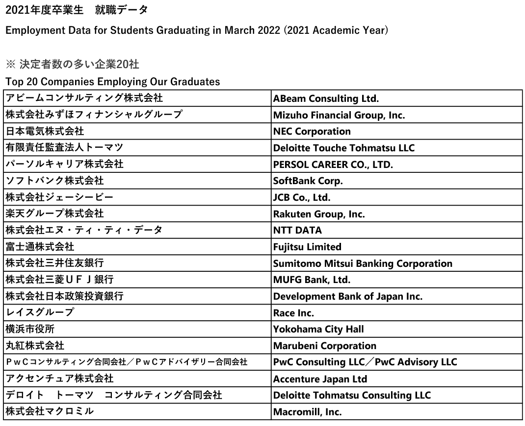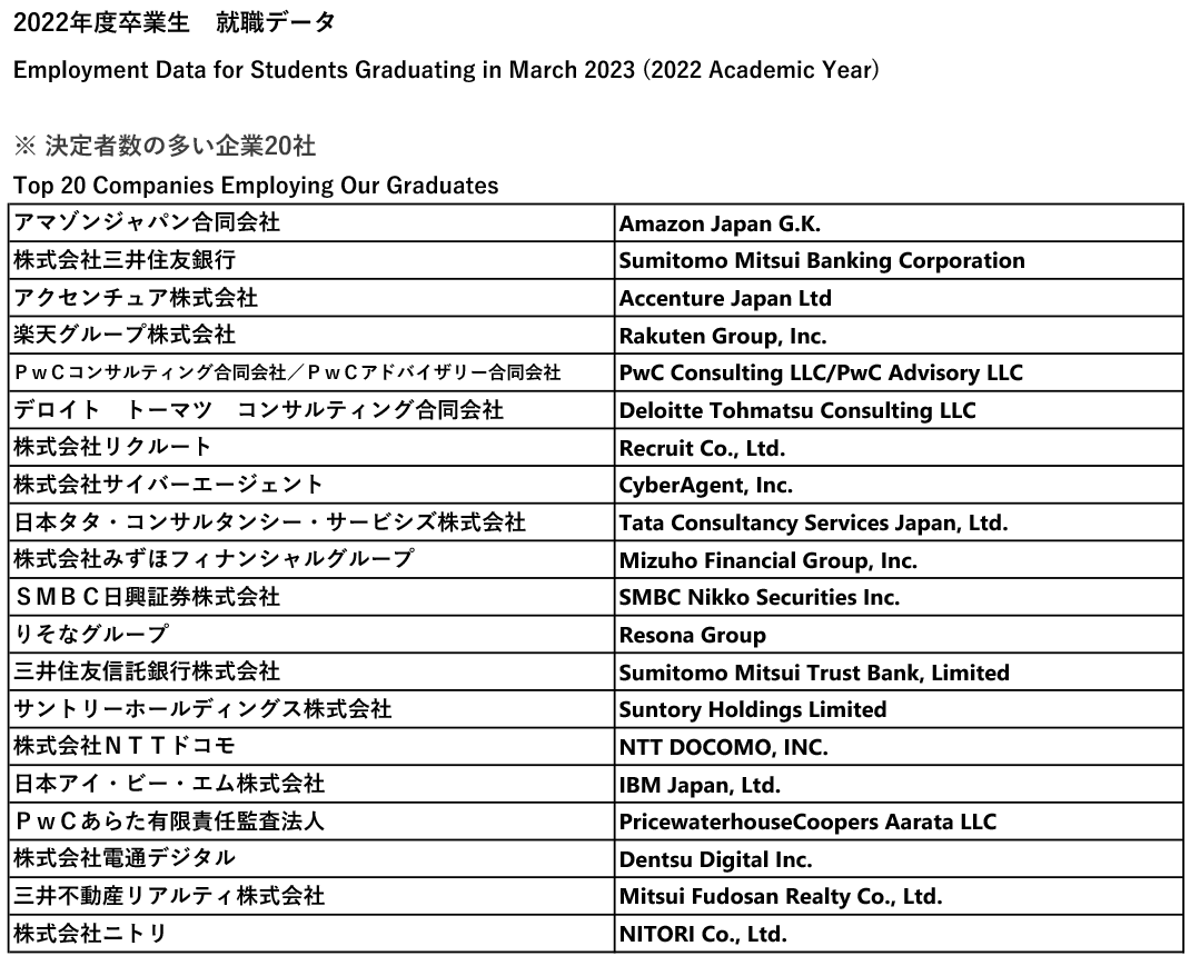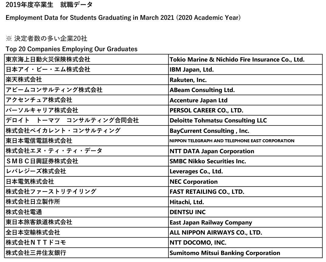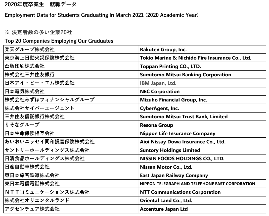 就職先一覧