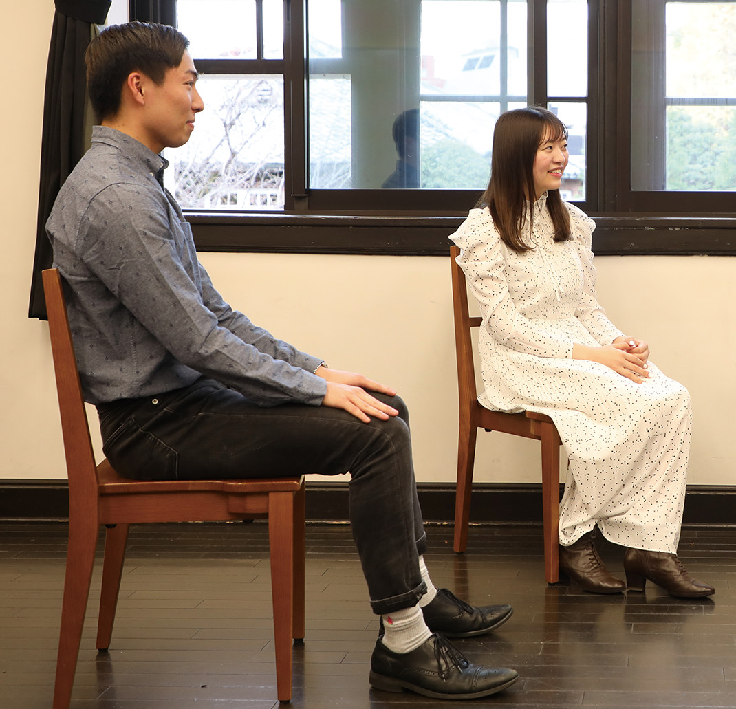 左:安宅 勇輝 さん(経営学科3年/立教池袋高等学校 出身)、右:奥野 未侑 さん(国際経営学科3年/旭川藤女子高等学校 出身)